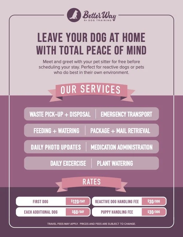 In-home and virtual sessions are one hour each. The number of sessions you & your dog need will depend on the severity of your issue(s).